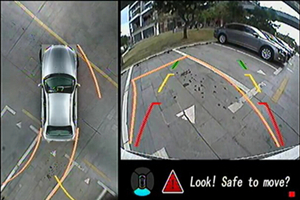 道可視360度全景行車輔助系統通過安裝在前后左右四個高清攝像頭,通過無縫拼接技術,配合控制主機的“達芬奇”視頻處理芯片,展示出一幅360度的鳥瞰圖,3D圖像技術讓車身周圍一覽無余,在車內就能清晰的看到車外的環境,讓駕駛得心應手。如果開啟了錄像功能,在行車過程中,錄像工作自動開始工作,記錄下行車過程。