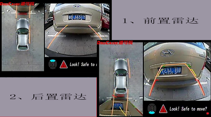 道可視360度全景行車輔助系統增加了全新的前置/后置雷達(可視倒車雷達),當靠近其他車輛或障礙物時,在車載DVD上可以清楚的看到雷達提示,有效的避免發生碰撞。
