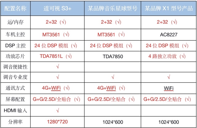 那么,道可視S3+音樂車機(jī)到底有什么料呢?空口無憑,小編直接拿它和業(yè)內(nèi)同屬高端配置的其他品牌產(chǎn)品進(jìn)行對(duì)比。