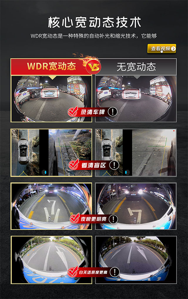 除了“6D”之外,道可視還將4個攝像頭分辨率提升至2560*1440,同時“WDR寬動態”影像處理技術的加持,讓道可視360°全景面對光照不理想的“極端”情況下,也能夠做到游刃有余。