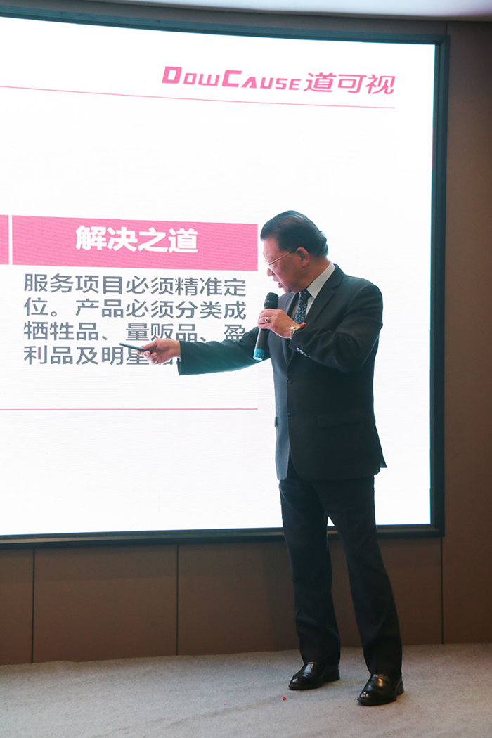 針對當(dāng)下終端門店運營者所面臨的種種困惑,蔡老師也提出了解決之道,他指出門店有服務(wù)項目必須精準(zhǔn)定位,產(chǎn)品必須分類成犧牲品、量販品、盈利及明星產(chǎn)品,同時,如果說門店有20%的員工劣根性很強(qiáng),無論如何都無法改變,老板就必須使出殺手锏,不能再將這樣的員工留在店內(nèi)等等。